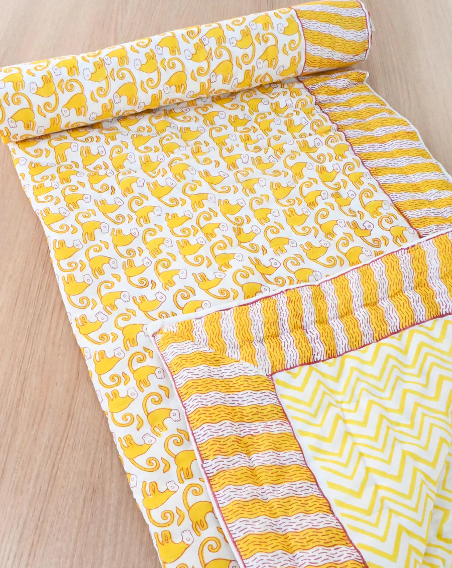 Funky Monkey GOTS Certified Organic Cotton Quilt for Babies/Kids-Minor Defect-B3